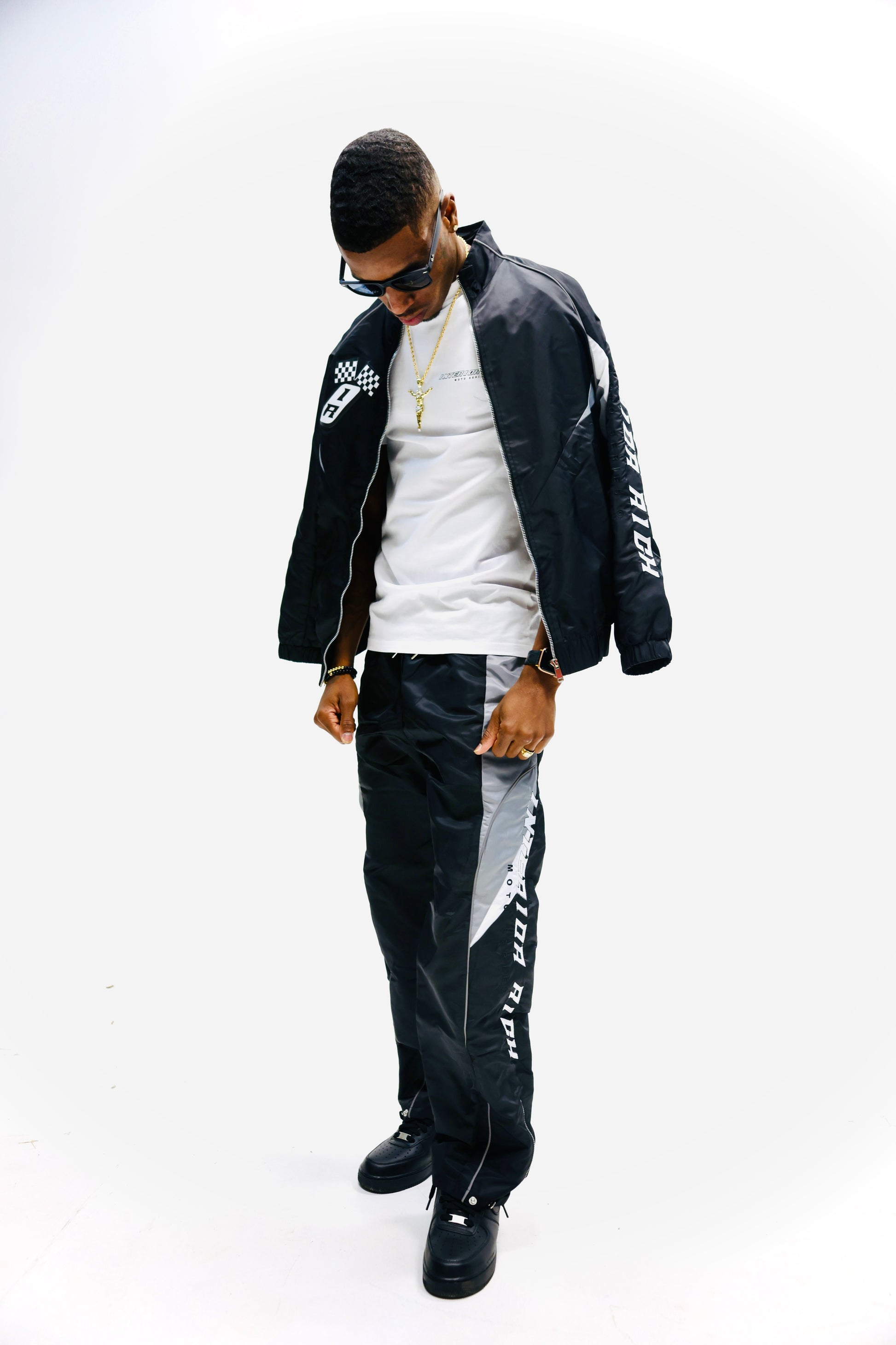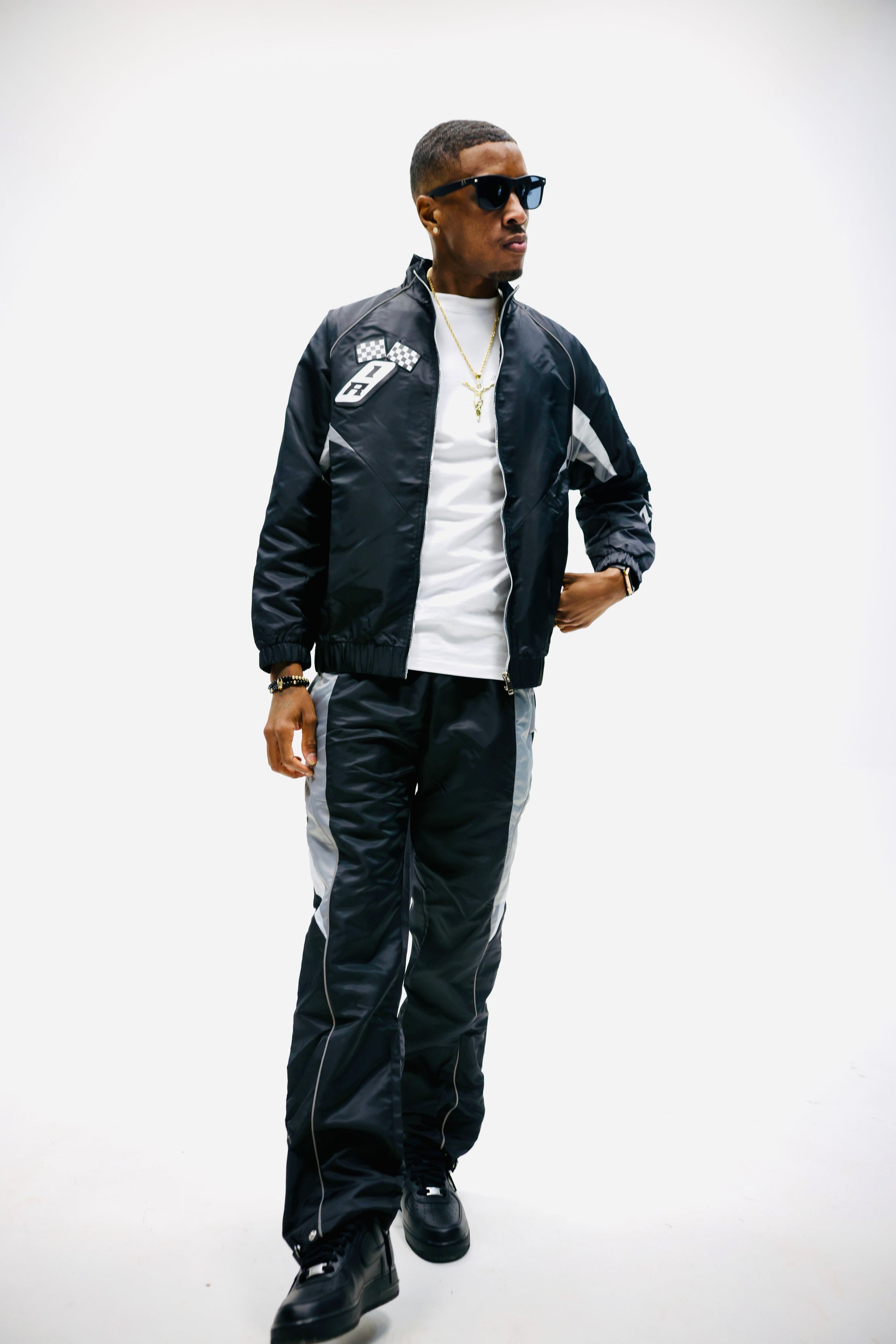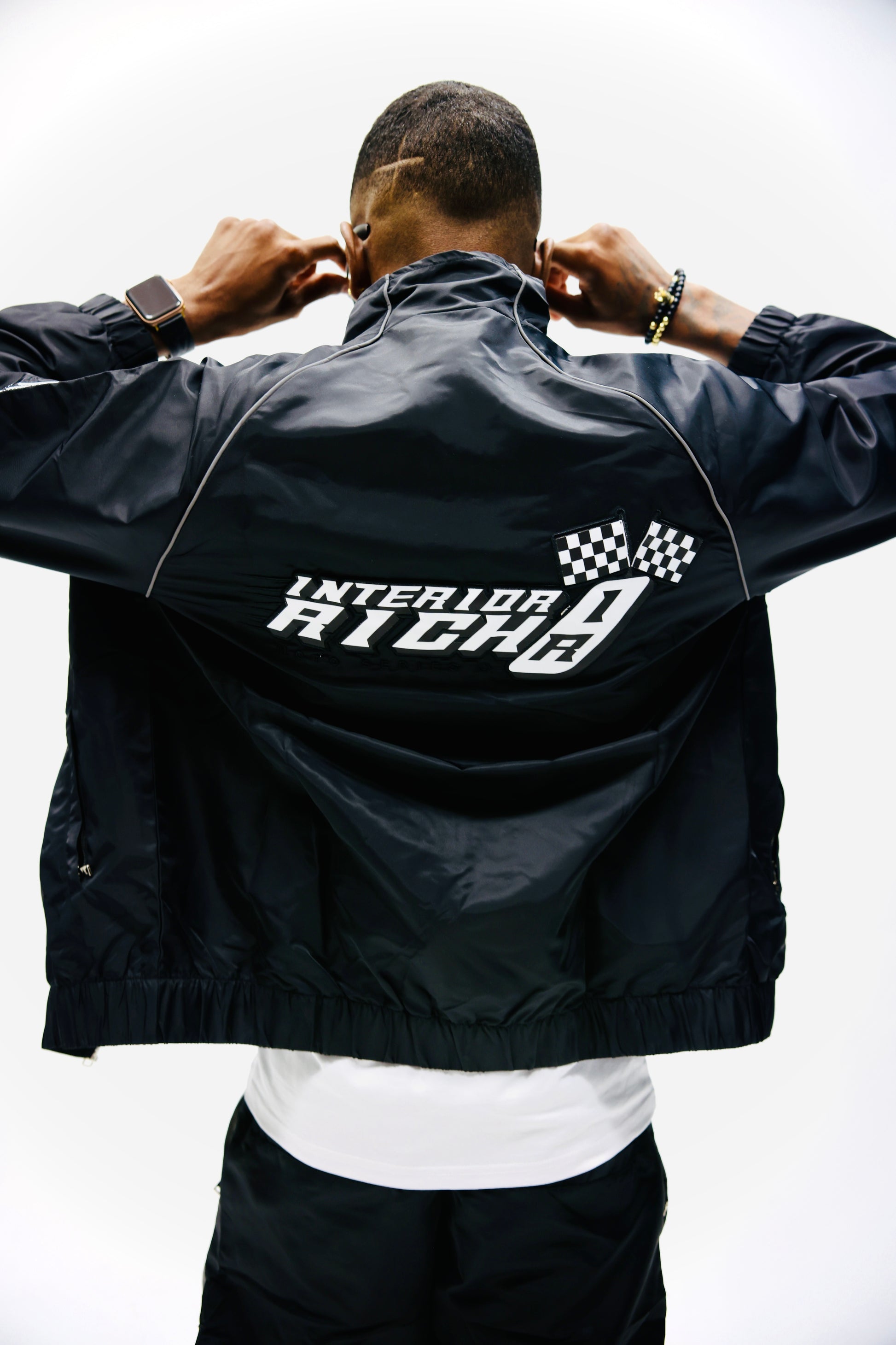 Level up your streetwear with the Interior Rich Trackstar 9 Nylon Racing Set, engineered for movement, style, and all-day comfort. This lightweight two-piece set blends motorsport energy with modern street aesthetics — featuring bold “Interior Rich” sleeve hits, checker flag detailing, and contrast grey paneling that brings the entire fit to life.