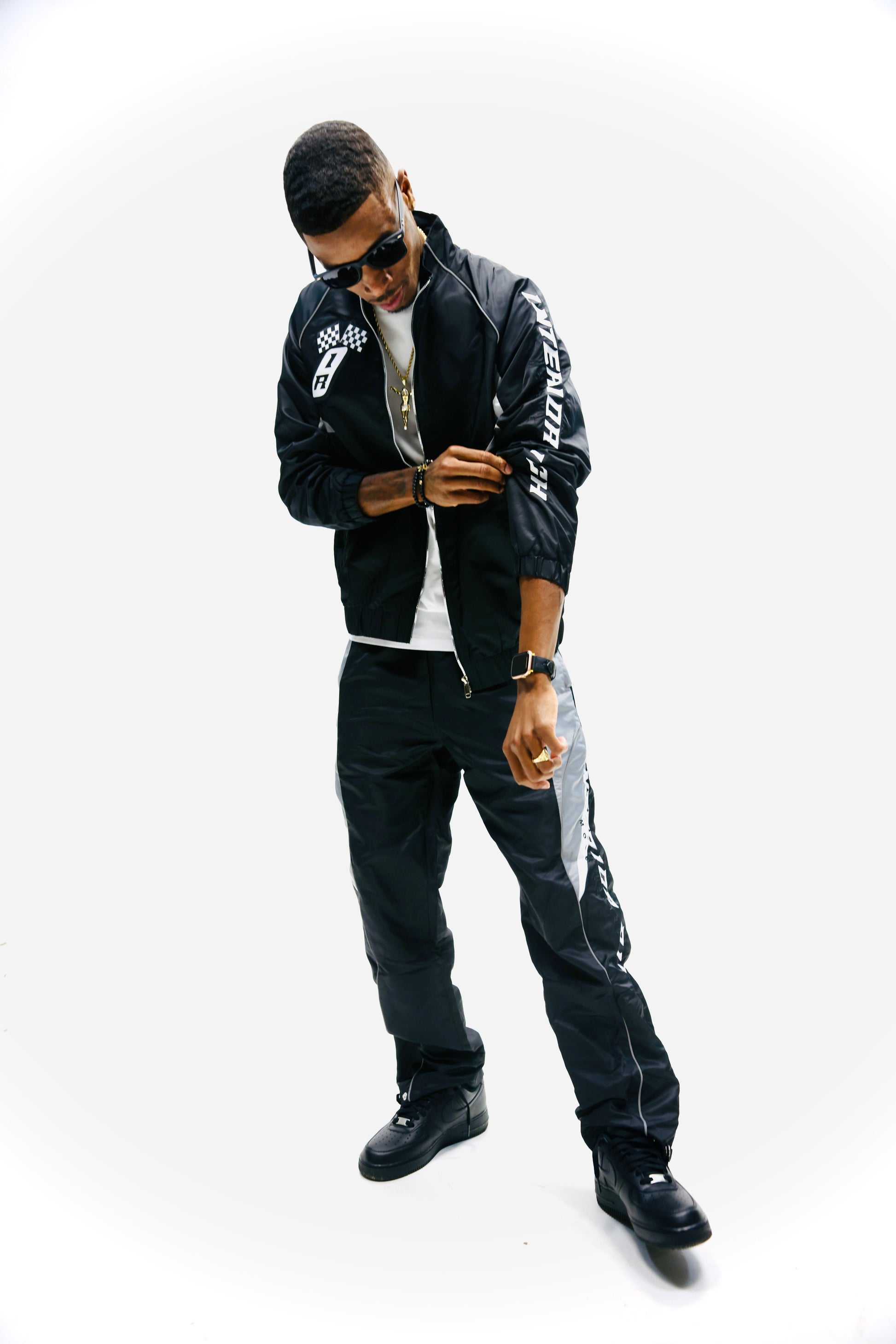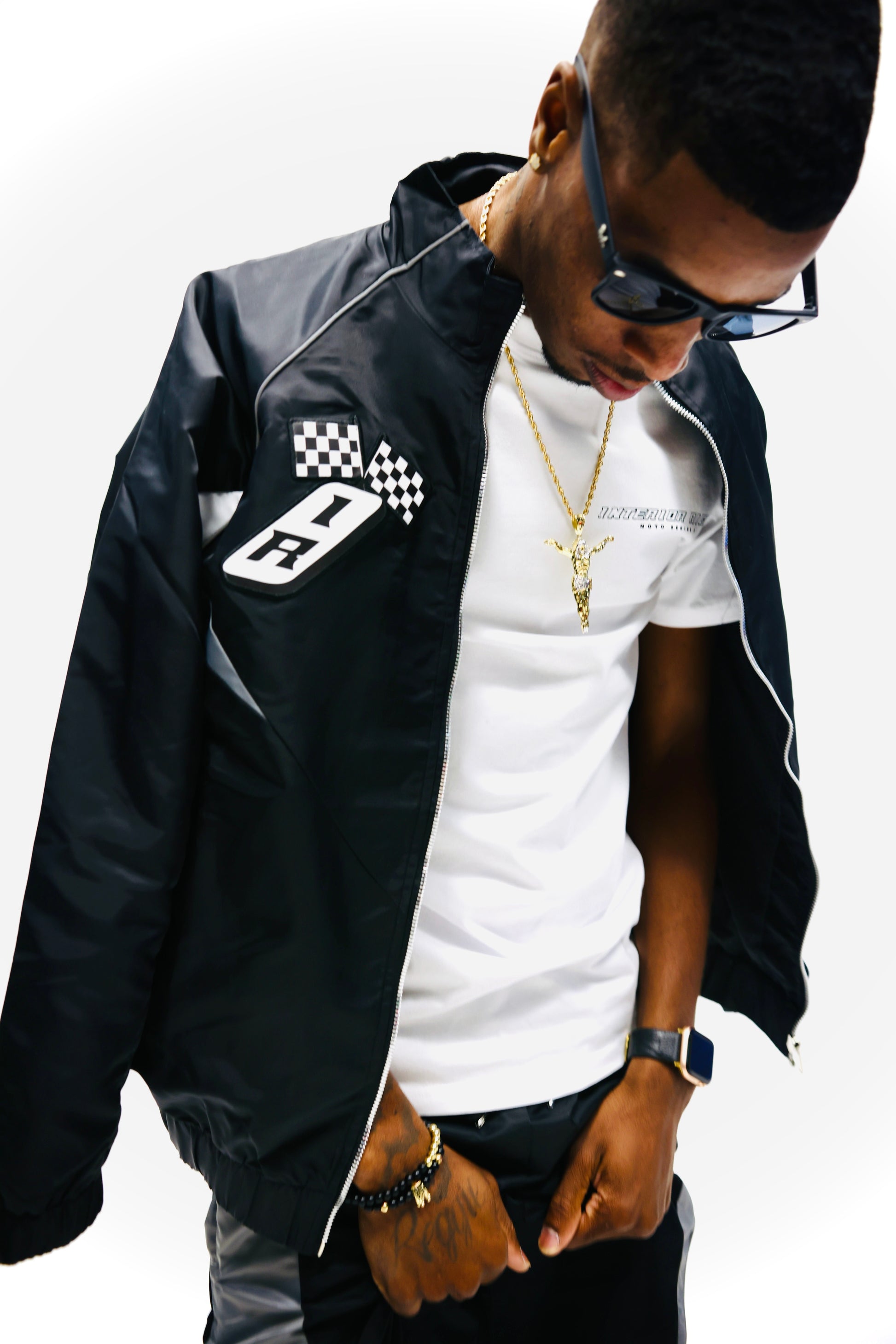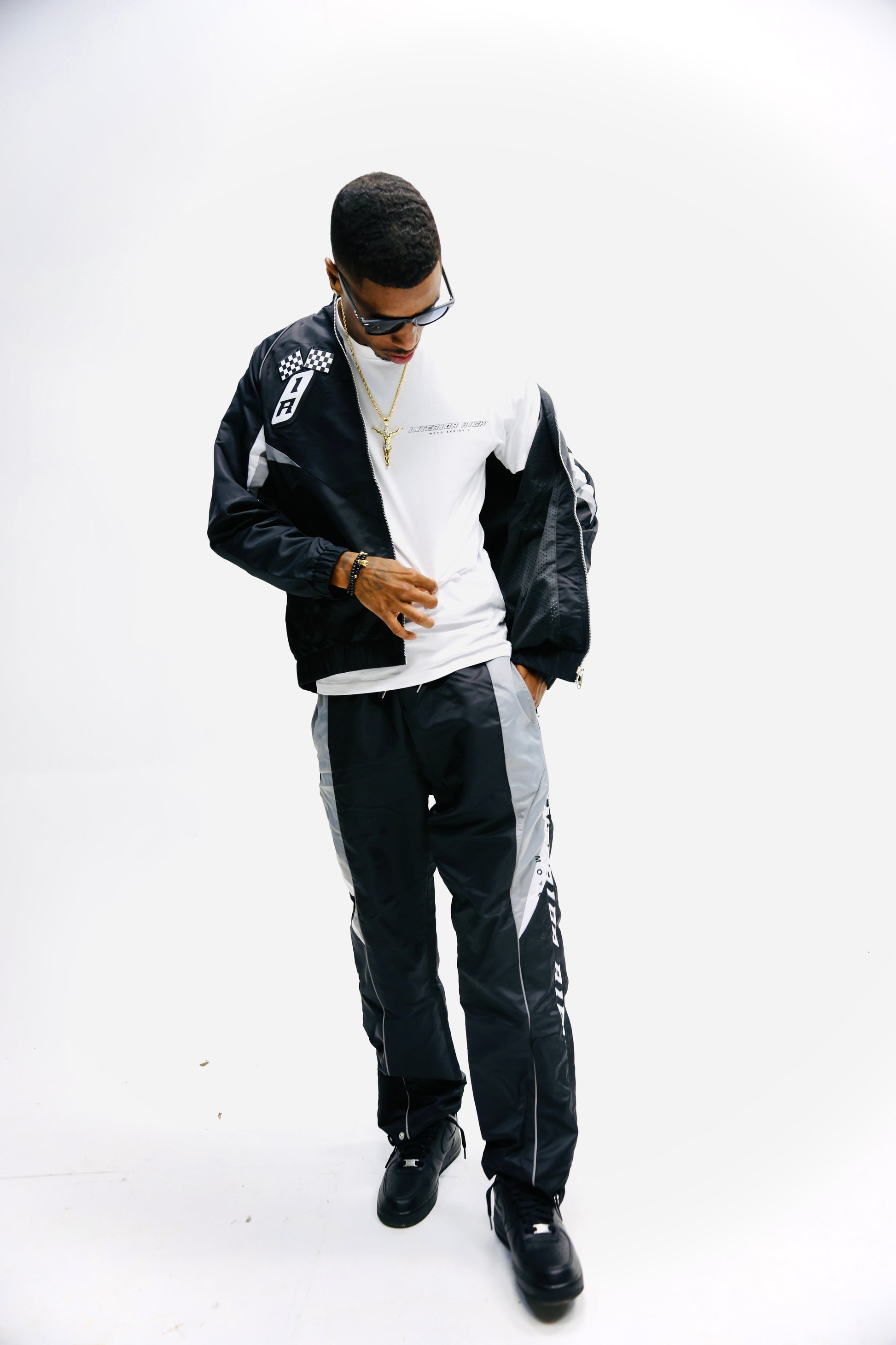 Level up your streetwear with the Interior Rich Trackstar 9 Nylon Racing Set, engineered for movement, style, and all-day comfort. This lightweight two-piece set blends motorsport energy with modern street aesthetics — featuring bold “Interior Rich” sleeve hits, checker flag detailing, and contrast grey paneling that brings the entire fit to life.