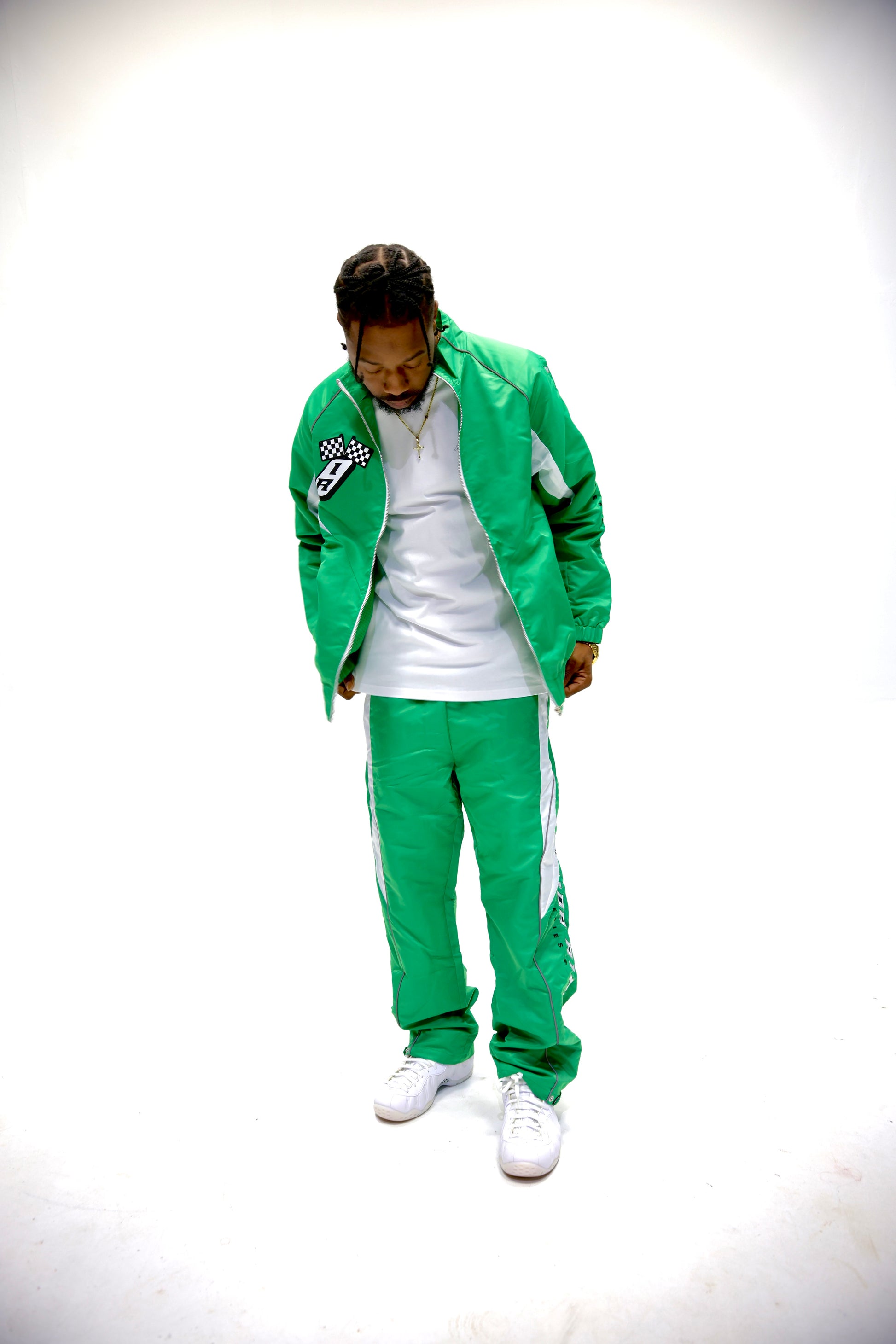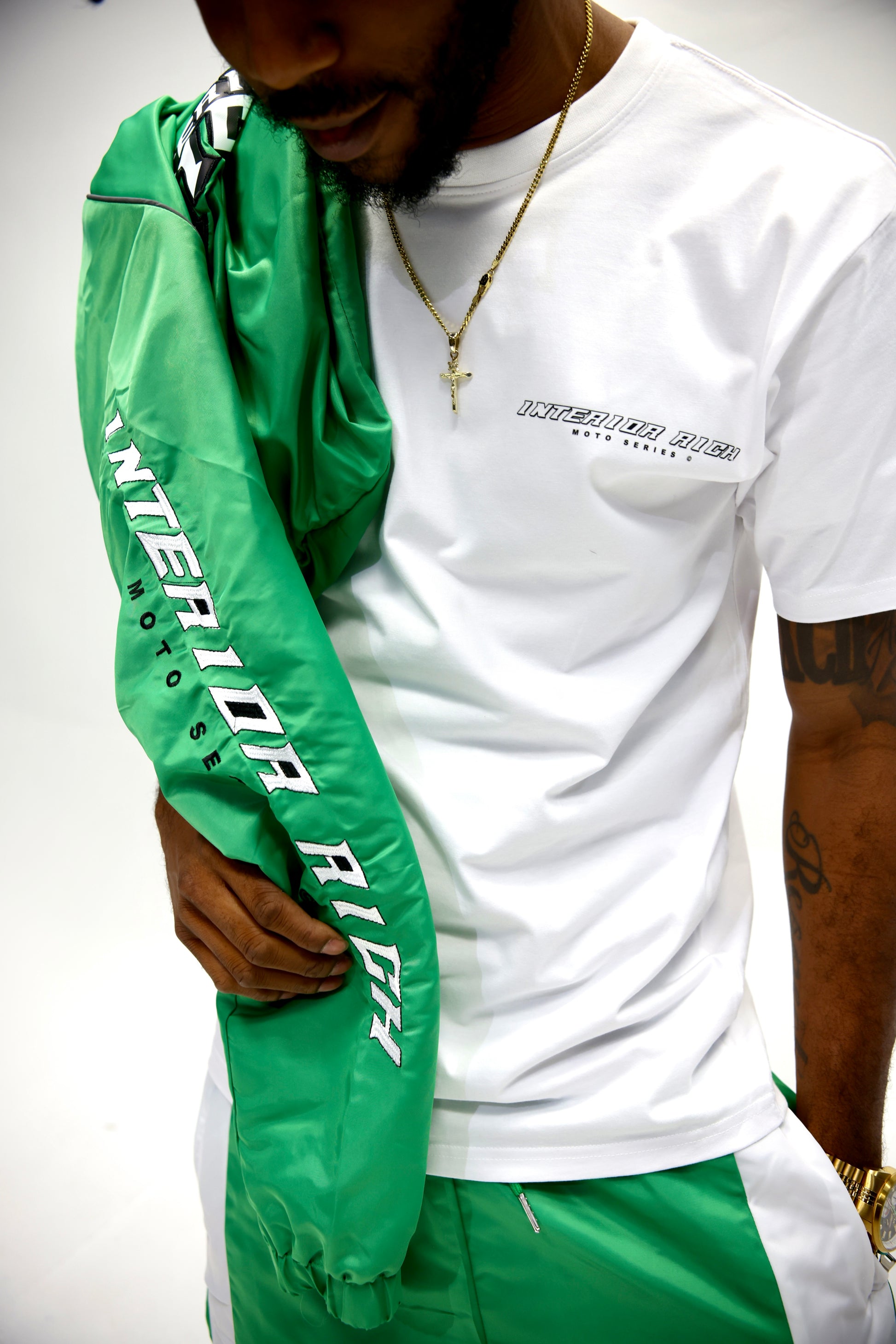 Level up your streetwear with the Interior Rich Trackstar 9 Nylon Racing Set, engineered for movement, style, and all-day comfort. This lightweight two-piece set blends motorsport energy with modern street aesthetics — featuring bold “Interior Rich” sleeve hits, checker flag detailing, and contrast grey paneling that brings the entire fit to life.